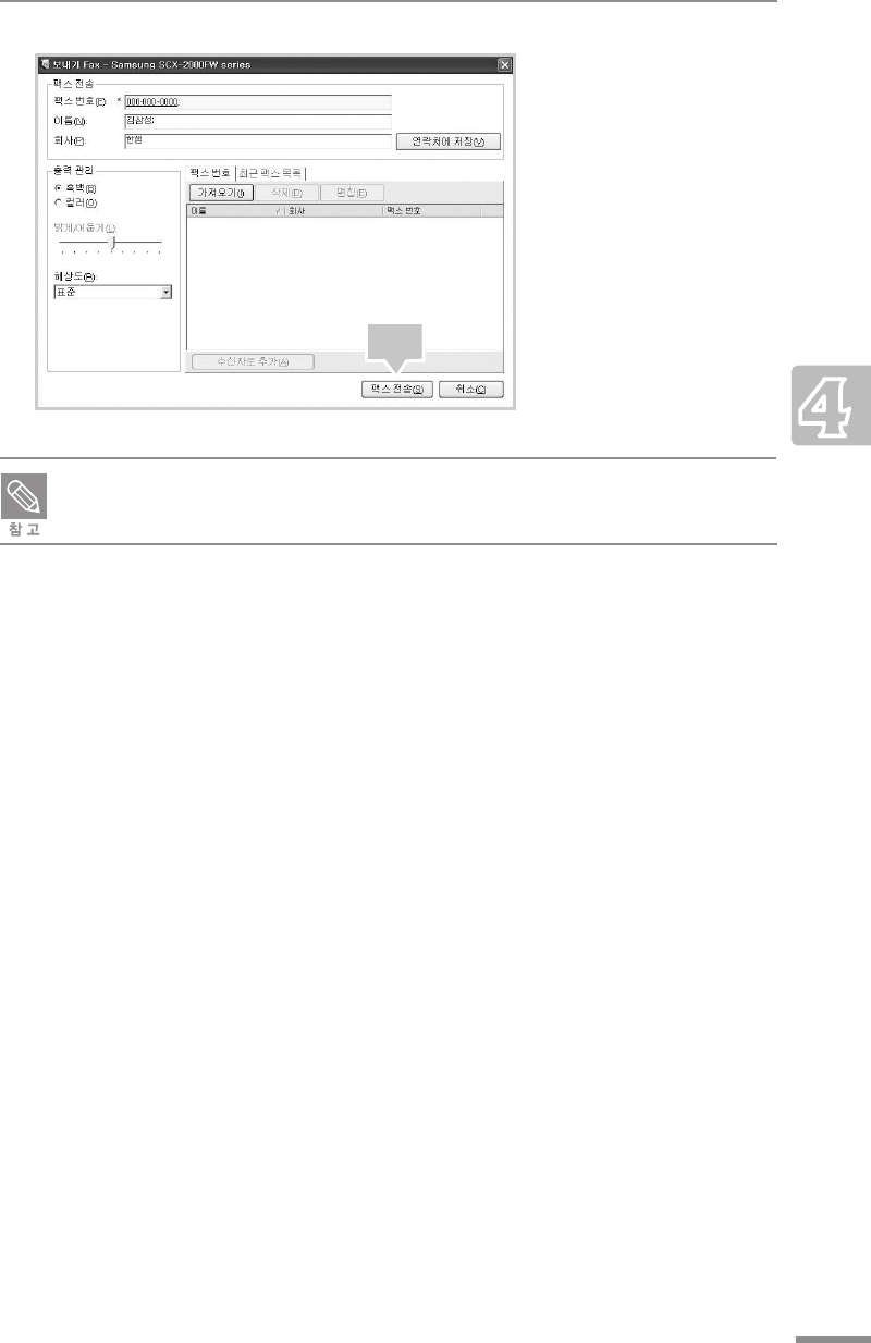 최근 수 / 발신 기록에서 전화 걸어 팩스 보내기